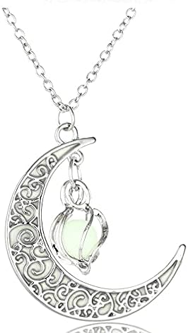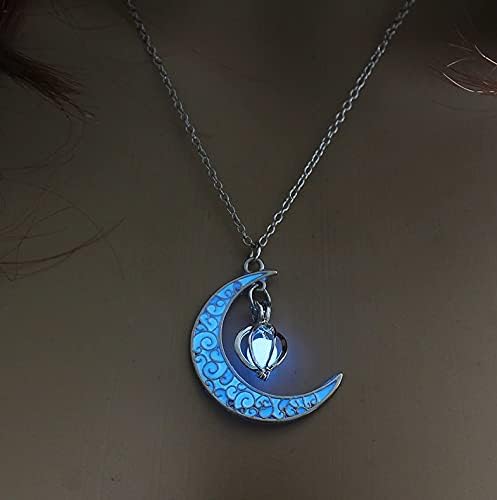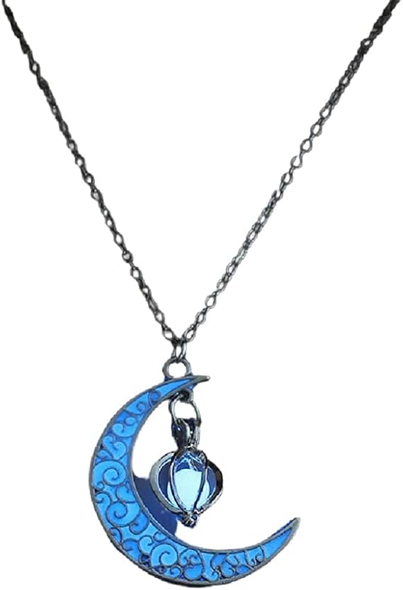 Glowing Cobalt Blue Crescent Moon Pendant frames a beautiful round cobalt blue glowing orb.